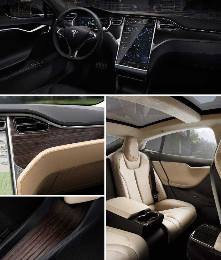 Зарядка аккумуляторной батареи может производиться от бытовой розеткой на 120 или 240 Вольт в доме или в общественных зарядных станциях . Примерно за 5 часов может зарядиться батарея от 240 — вольтовой розетке. У полноприводной Tesla Model S установлено два двигателя (Dual Motor), один спереди, а второй сзади, что дает независимое управление крутящим моментом передних и задних колес, и как результат — беспрецедентный контроль тяги во всех условиях. Структура кузова преимущественно алюминиевая, сталь используется только для увеличения прочности в ключевых областях. Результирующая жесткость позволила придать машине хорошую динамику, несмотря на ее размер и вес